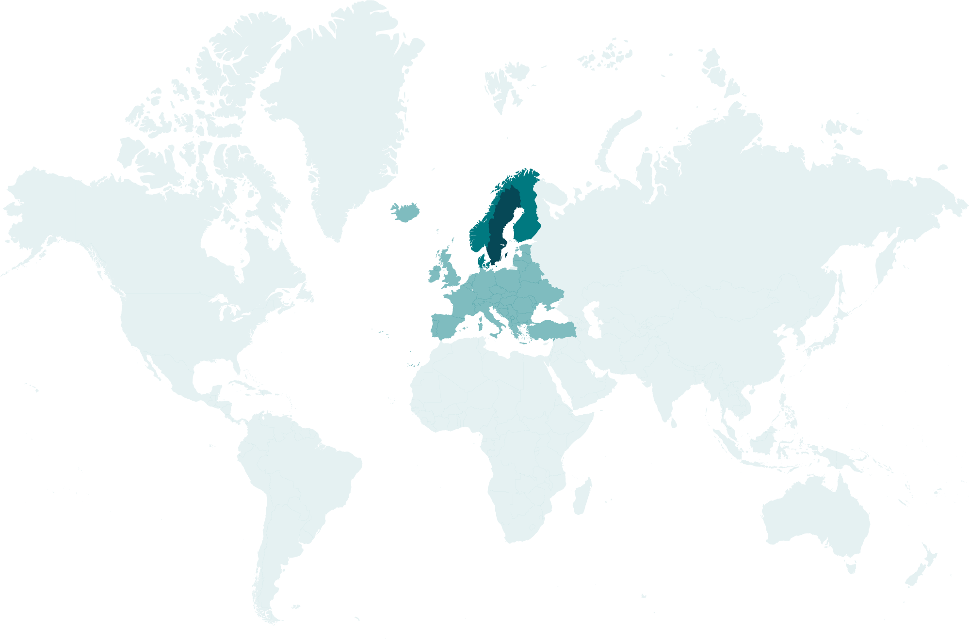 Eftersom Lannebo investerar globalt, är dessa nationella mål viktiga för att förstå hur olika regioner bidrar till Parisavtalets övergripande mål om att begränsa den globala uppvärmningen till 1,5°C. Kartan ger en överblick över hur snabbt olika länder planerar att ställa om, och därmed vilka möjligheter och utmaningar som finns för bolag i respektive region.